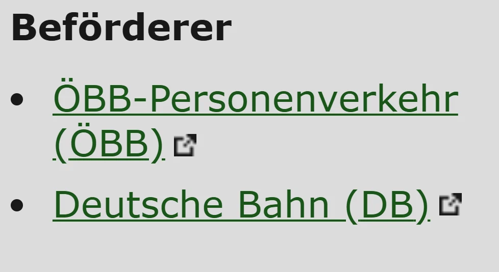 Außgenommen sind Fahrten, die im reinen Binnenverkehr stattfinden (also in Österreich beginnen und enden). FIP Freifahrtscheine der ÖBB gelten für keine Fahrten auf der Strecke.
